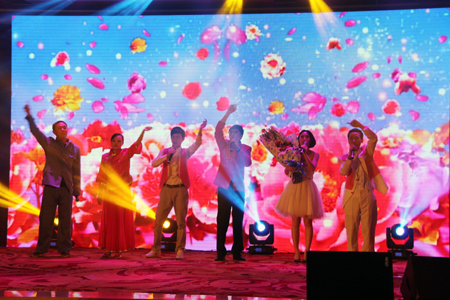 “苍茫的天涯是我的爱,绵绵的青山脚下花正开……”一曲《最炫民族风》的开场舞正式拉开了酒店文艺演出的大幕。在场所有员工的激情瞬间被点燃,独唱、舞蹈、双簧、串烧以及精彩纷呈的抽奖活动让大家其乐融融。