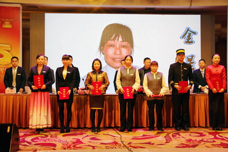 随后,张总与酒店各部门负责人签定了《安全责任书》。酒店副总经理朱银宣读了友豪锦江酒店2014年度优秀表彰的决定。酒店客房部、物业管家部捧得了年度优秀团队奖,优秀经理则花落酒店客房部经理雷川,工程部经理罗建国获得节能贡献奖,另外优秀主管、喜出望外系列、微笑大使、最佳菜品创新等奖励共有18人获奖。