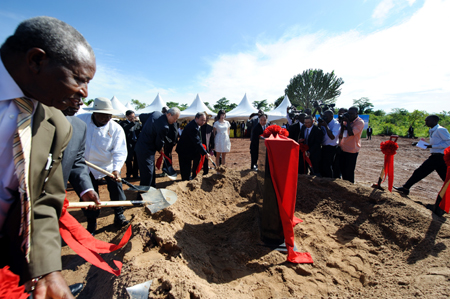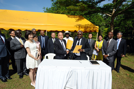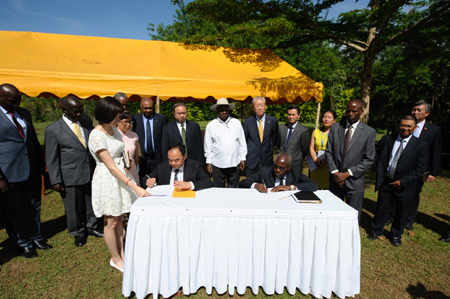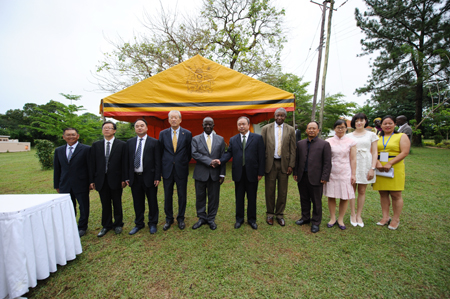 当日的卢韦罗艳阳高照,乌干达总统约韦里·卡古塔·穆塞韦尼、副总统爱德华·塞瓦努卡·塞坎迪、农业部部长布克巴彦安迪·特瑞斯、中国驻乌干达大使赵亚力、四川省农业厅副巡视员王晓军、四川友豪恒远农业开发有限公司董事长罗恒等中乌政商界人士、园区周边民众约2600人出席开园仪式,并一起为园区奠基破土。