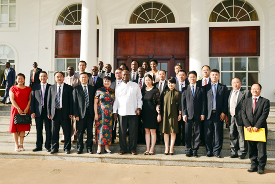 乌干达总统与四川代表团、科虹管理层总统府前合影留念